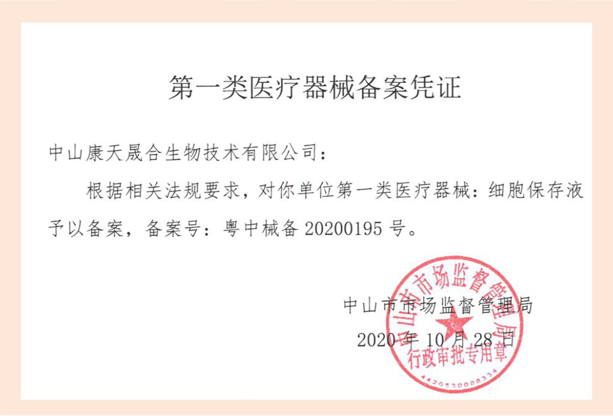 On October 28, 2020, Zhongshan City Market Supervision and Administration Bureau issued the first-class medical device registration certificate to our company for QuaCell® Serum-free Cell Cryopreservation Solution (Cat. No.: B31001), and the record number is Yuezhong Armament No. 20200195.QuaCell® Serum-free Cell Cryopreservation Solution, as one of QuaCell's independent R&D products, can not only be used in cell preservation, cell therapy, gene therapy, and other fields, but also in the field of biopharmaceutical R&D.