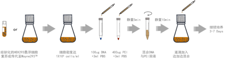 Wayne293™Expression Medium is a protein-free medium specifically developed for the supporting the growth and transfection. It is compatible and applicable to cell lines HEK293, HEK293T, HEK293A, and HEK293FT under suspension culture conditions. Wayne293™ Expression Medium is a complete, ready-to-use and animal-origin free medium.