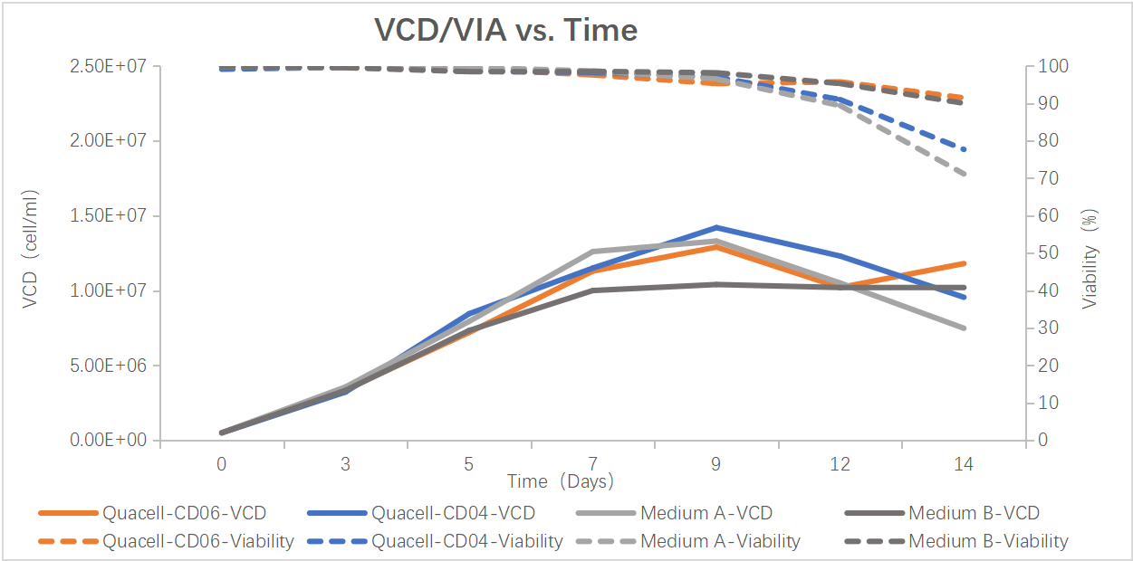 QuaCell® CHO Feed 04 Supplement is a serum-free, animal component-free, chemically defined feed medium. This product provides essential nutrients in the later period of CHO cell suspension culture to maintain the activity, increase the density and improve the protein expression of CHO cells.